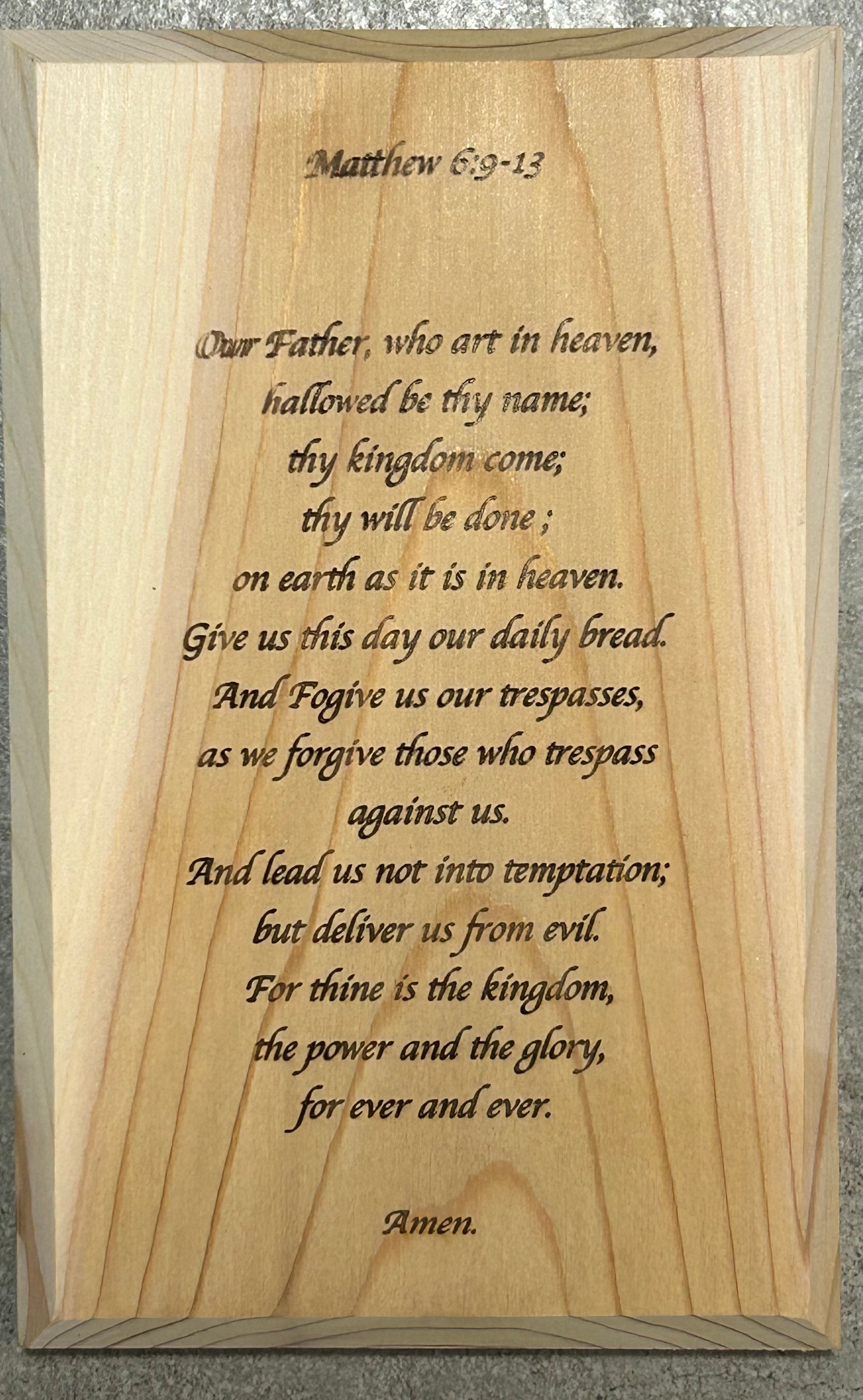 The Lords Prayer done on Red Cedar 95 mm x 160 mm